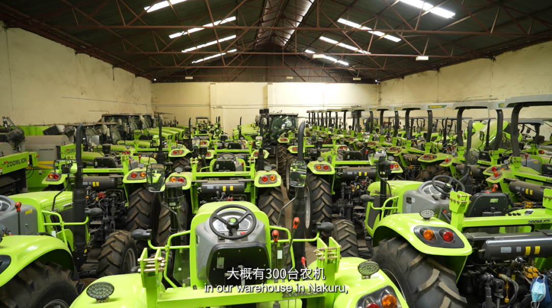 这个仓库大概有300台农机,主要包括拖拉机、水稻机以及插秧机。“很多肯尼亚人喜欢我们的拖拉机,因为它们动力充足,油耗低,操作简单。” 中联重科 肯尼亚农业服务工程师肯尼斯介绍。