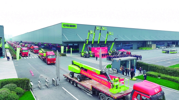 在中联智慧产业城高空作业机械园区,以全球最高82米直臂式高空作业平台为首的超4000台(套)高空作业机械在活动期间大规模、多品类集中发车,覆盖长三角、京津冀、成渝等国内重点区域及海外40多个国家和地区,加速拓展全球市场。