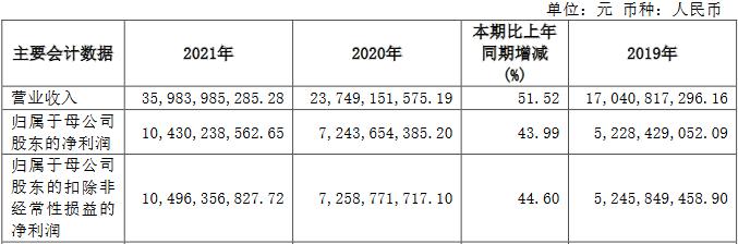 昨日晚间,中国银河披露2021年年度报告。报告期内,中国银河实现营业收入359.84亿元,同比增长51.52%;实现归属于母公司股东的净利润104.30亿元,同比增长43.99%;实现归属于母公司股东的扣除非经常性损益的净利润104.96亿元,同比增长44.60%;经营活动产生的现金流量净额为570.85亿元,同比增长51.40%。