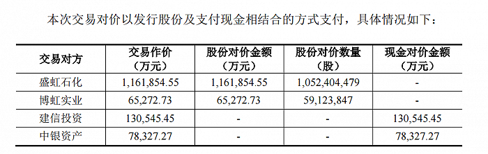 (东方盛虹公告:本次交易对价支付方式)