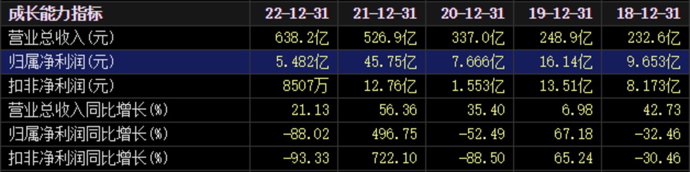 年报显示,东方盛虹2022年实现营业收入约638.22亿元,同比增长21.13%(调整后);归母净利润约5.48亿元,同比下降88.02%(调整后)。即便这样,还要靠处置非流动资产、政府补助“美化”财报。2022年东方盛虹实现的扣非后净利润为8506.94万元,同比下降93.33%(调整后)。