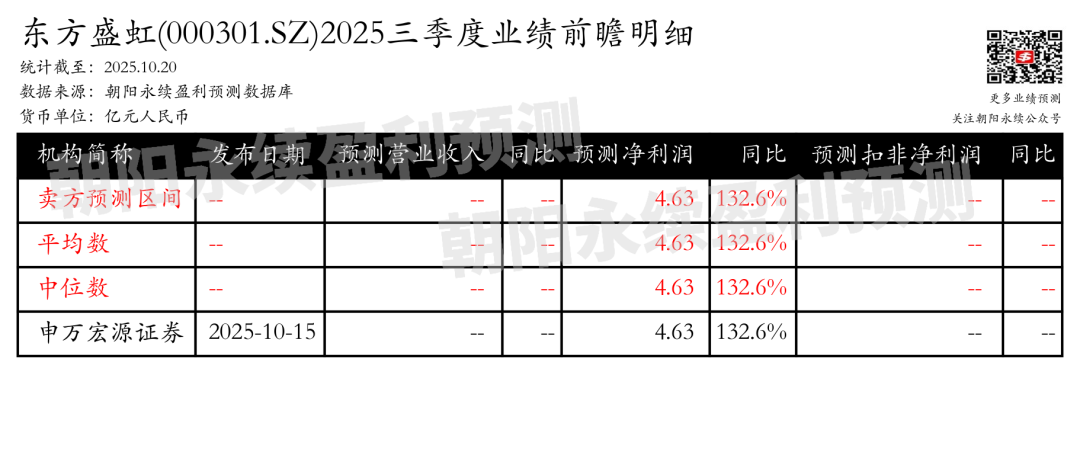 截至2025年10月20日,根据朝阳永续季度业绩前瞻数据: