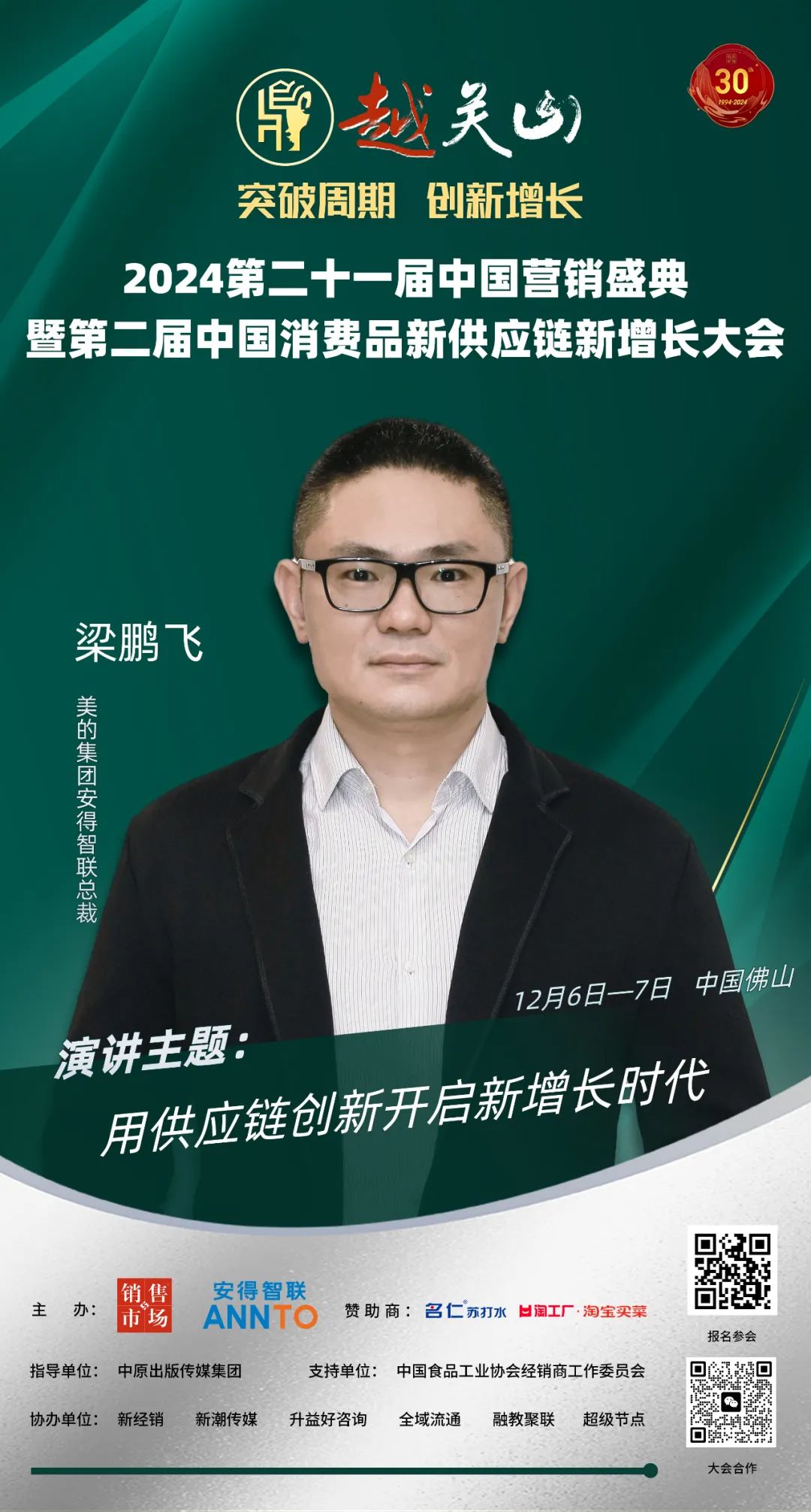 2024年12月6日-7日,由销售与市场杂志社与安得智联共同主办的第二十一届中国营销盛典暨第二届中国消费品新供应链新增长大会将在广东佛山顺德保利假日酒店盛大开幕!