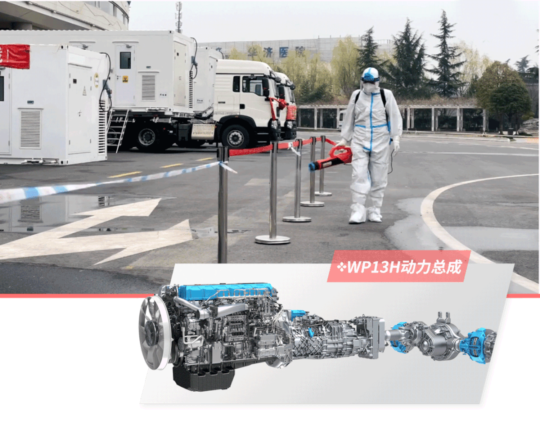 在陕西,搭载潍柴WP13H黄金动力总成的陕重汽移动核酸检测车星夜驰援。“潍柴发动机+法士特变速器+汉德车桥”动力总成高效可靠、动力强劲,在疫情初期能够快速且大规模地将核酸检测中心移动到疫区,切实提高跨区域公共卫生事件应急响应速度。