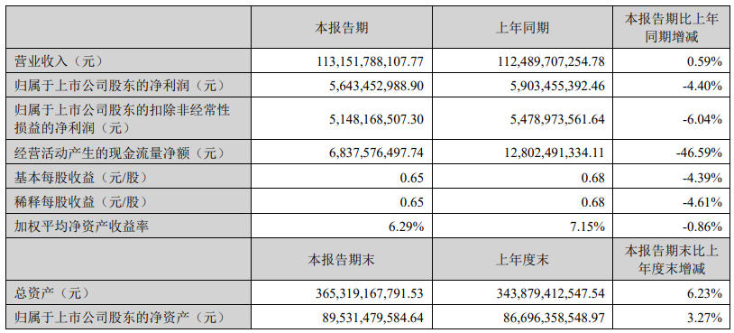 潍柴动力股份有限公司(简称“潍柴动力”)8月30日发布2025年半年度报告。报告显示,上半年潍柴动力实现营业收入1131.5亿元,同比增长0.59%;归母净利润56.4亿元,同比减少4.40%。