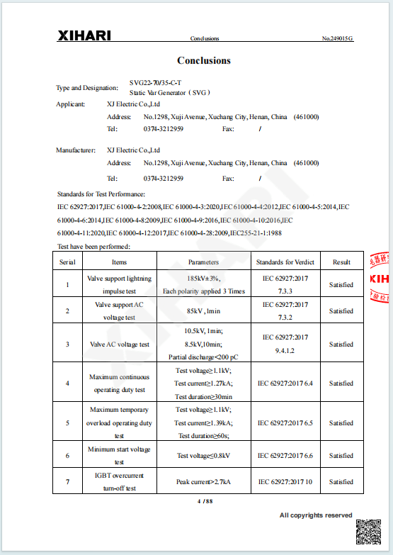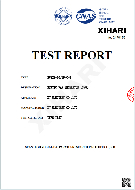 其中大容量高可靠35kV/±70Mvar SVG顺利通过IEC 62927:2017标准规定的各项型式试验认证,35kV/±100Mvar SVG通过中国机械工业联合会鉴定达到了国际先进水平。