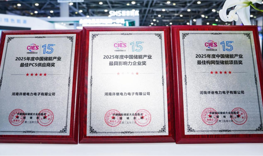 3月23日至26日,由中国化学与物理电源行业协会主办的CIES2025储能大会暨展览会在杭州盛大启幕。许继电气受邀出席CIES杭州储能大会暨展览会,重磅展示许继全系列储能产品,并荣获“年度中国储能产业最具影响力企业奖”“最佳PCS供应商奖”“最佳构网型储能项目奖”。会议期间,许继作《数智化混合储能联合调频技术解决方案及实践》演讲及《构网型PCS技术解析与场景化应用方案》新品发布会报告。