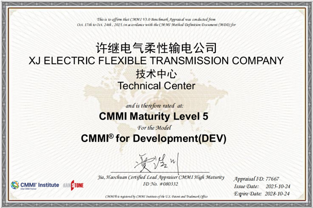 是国际公认的衡量企业研发能力成熟度和项目管理水平的权威标准,5级为其最高成熟度等级,代表企业在过程优化、量化管理、持续改进等方面具备卓越的系统化能力。许继电气柔性输电公司此次获评CMMI5级,是对其多年来在技术创新、过程管理和质量管控方面不懈努力的高度认可。