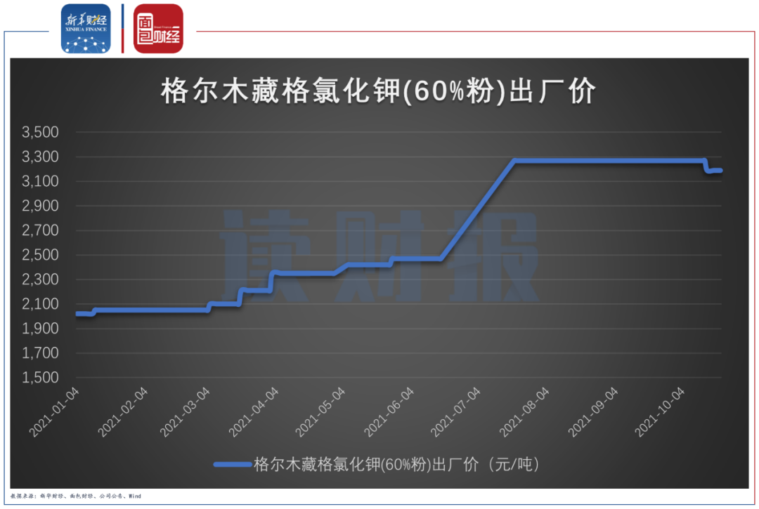数据显示,截至9月30日,藏格控股全资子公司格尔木藏格氯化钾(60%粉)的出厂价为3270元/吨,较年初的2020元/吨相比增长了61.88%。2021前三季度藏格控股生产氯化钾68.18万吨,销售66.75万吨。