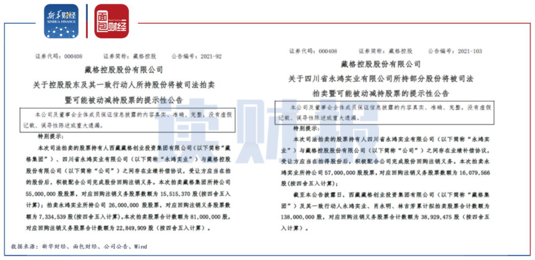 虽然藏格控股的业绩大幅增长,但由于此前重组时未完成业绩承诺,公司控股股东及其一致行动人合计将有1.38亿股公司股票被司法拍卖,其拍卖所得款项全部用于归还债务。