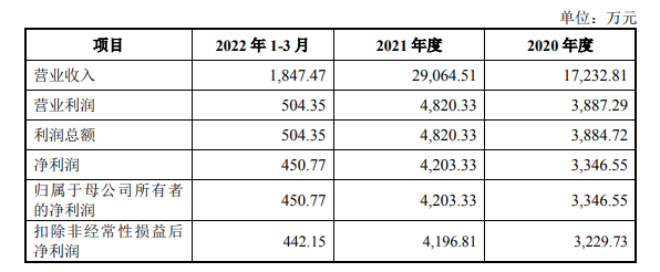 不过,近年来德通电气的业绩表现也颇为亮点。2020-2021年以及2022年1-3月,德通电气营业收入分别为1.72亿元、2.91亿元、1847.47万元,净利润分别为3346.55万元、4203.33万元、450.77万元。可以看出,2020年、2021年德通电气业绩处于增长态势。