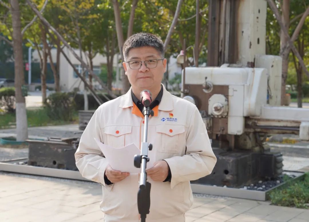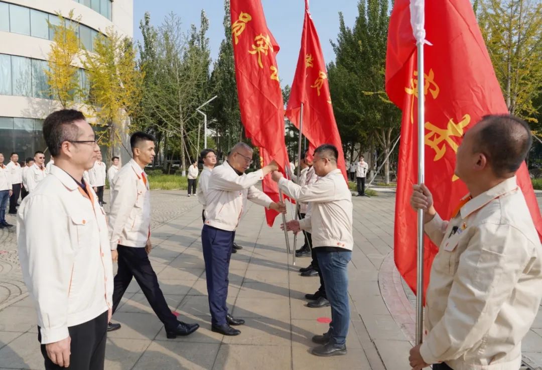 升旗仪式上,安丰收回顾了沈阳机床与党和国家同心、同向、同行的75年,鼓励广大干部员工勇挑重担、敢为人先,为将沈阳机床打造成为引领技术发展的世界一流高端机床装备企业而不懈奋斗。吴春宇向全体干部员工发出动员,要求大家务必坚持“合同为首、技术为要、质量为王、落地为大”,全力打好“四大必胜战役”。通用技术集团劳模桑会庆代表产业工人响应号召,坚定理想信念,坚决做到“技术硬”“质量硬”“信念硬”。活动中,公司领导为5个党员突击队授旗。