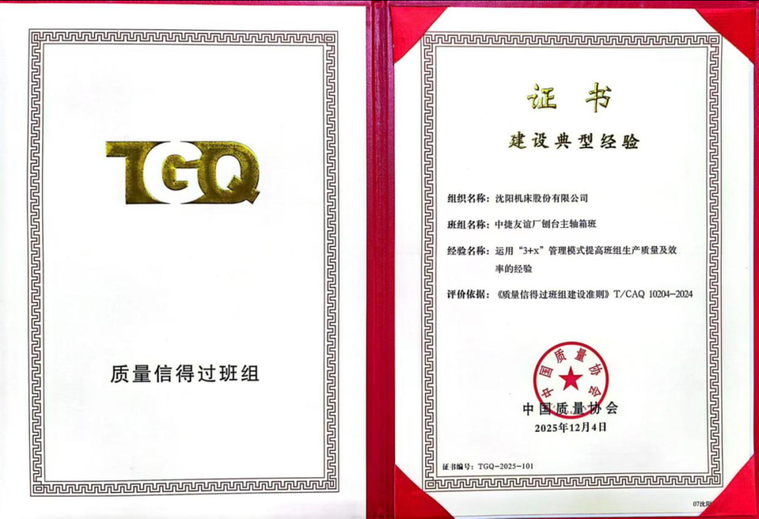 近日,通用技术沈阳机床“刨台主轴箱班”被中国质量协会授予“全国质量信得过班组”称号。该班组以“运用‘3+X’管理模式提高班组生产质量及效率”为题,在沈阳市质量信得过班组发表赛50余个班组中获现场发表评分第二名,经地方质量协会推荐参评国优,最终获评国家级荣誉。
