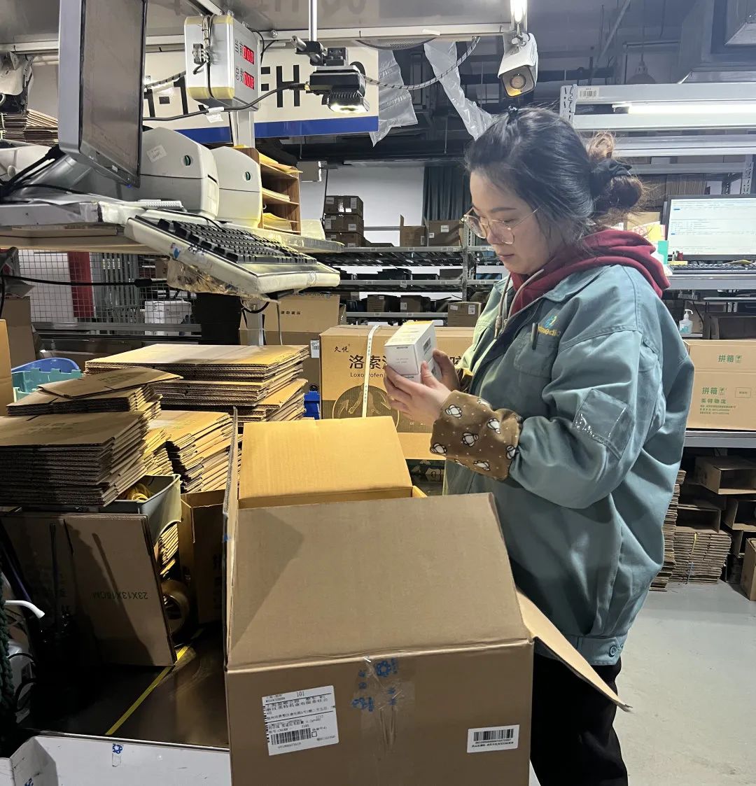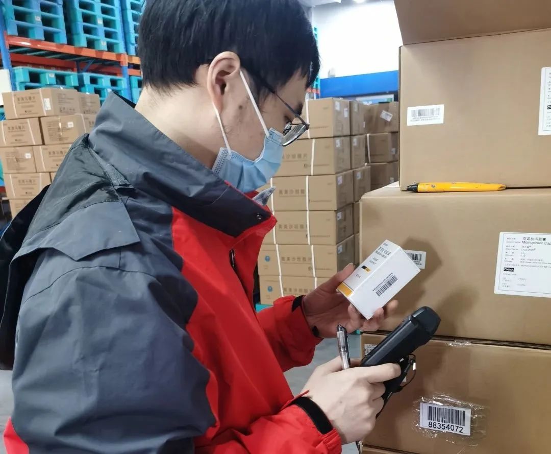 以最快速度完成首单开单出库。首批100盒莫诺拉韦胶囊完成装车,配送专车开往浙江大学医学院附属第一医院。