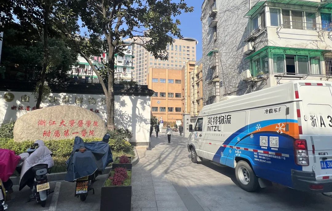 配送专车抵达浙江大学医学院附属第一医院,完成浙江省内首单配送,亮出“英特速度”!