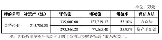 本次交易中,标的资产以2022年3月31日为评估基准日,采用资产基础法和收益法对英特药业100%股权进行评估。本次评估采用收益法评估结果339,000.00万元为英特药业的最终评估值,并经浙江省国资委备案。在评估基准日之后,因标的公司进行现金分红20,000.00万元,标的资产的交易价格应扣除交易对方享有现金分红10,000.00万元,交易各方友好协商确定英特药业50%股权的交易作价为159,500.00万元。