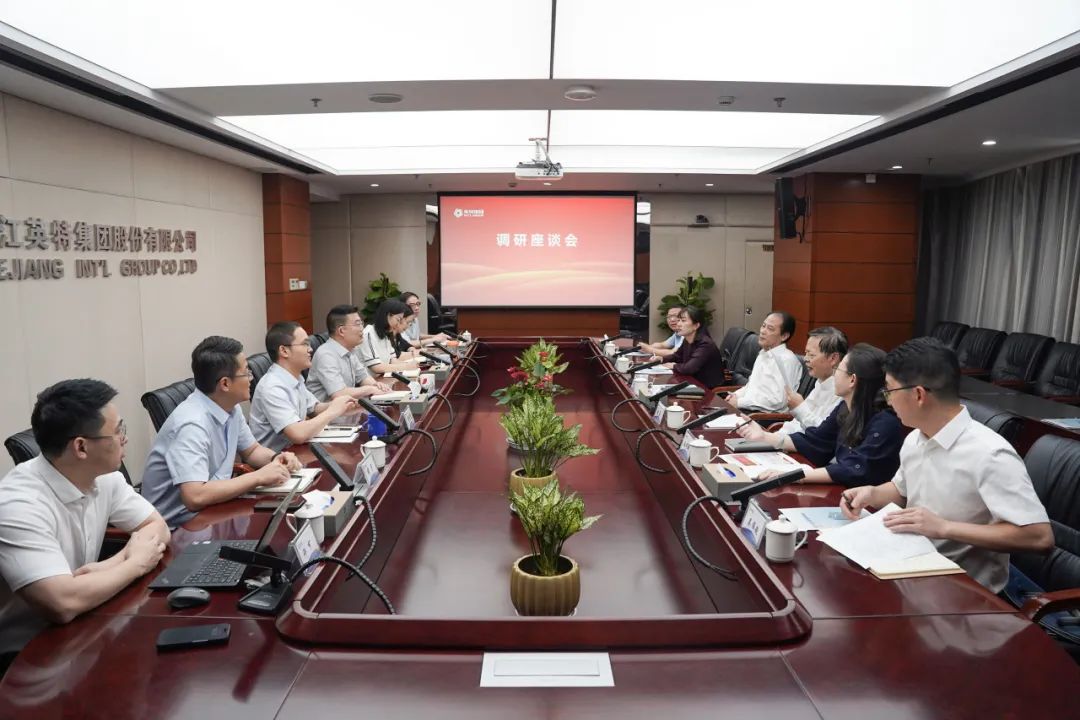 6月15日下午,省国贸集团党委副书记、总经理孙建华一行来英特集团调研,党委委员、副总经理张勇,集团经营管理部、办公室(党委办公室、公司治理部)相关负责人陪同调研,英特集团党委书记、董事长应徐颉等领导班子成员及相关部门负责人参加座谈交流。