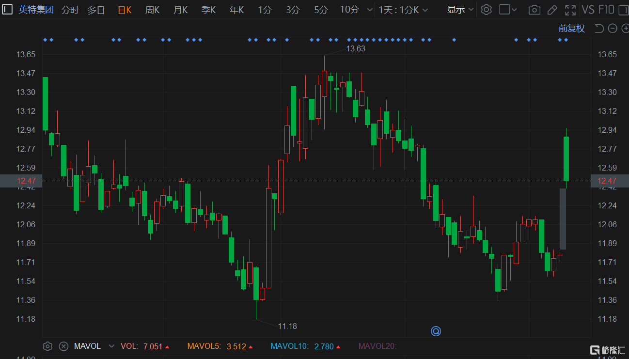 英特集团(000411.SZ)盘初触及涨停,现报12.48元涨幅回落至6%,总市值62.6亿元。该股昨日盘后公告,预计2023年1-6月归属净利润盈利2.67亿元至3.08亿元,同比上年增30.58%至50.64%。报告期内,获得搬迁补偿款预计增加税前利润约8796万元。