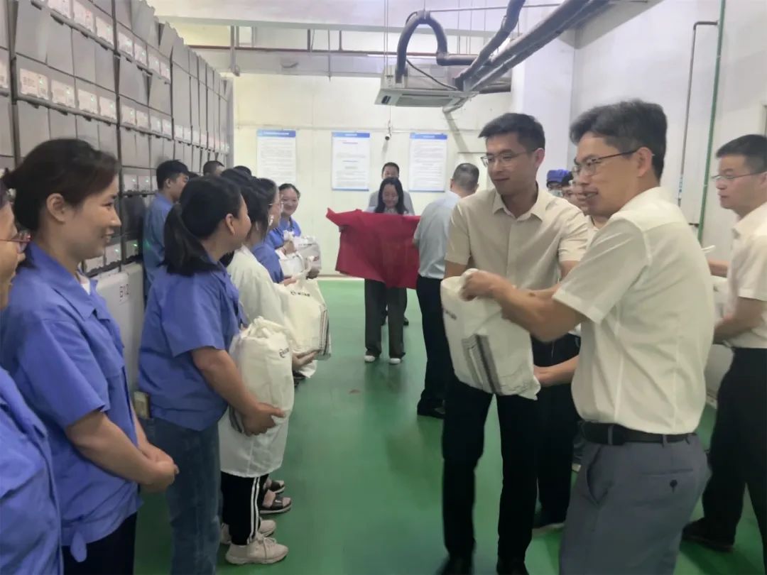 陈飞一行实地参观了英特中药煎药中心,详细了解审方、煎药、包装、自动化调配等工作车间生产情况,亲切询问一线工人工作内容,叮嘱工人做好防暑降温工作,并为他们送去防暑降温物资。陈飞强调,高温天气作业艰苦,一线职工要加强自我防护意识,注意劳逸结合;同时要求相关部门认真做好后勤服务,切实保障职工安全生产。