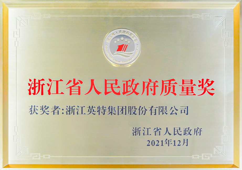 12月26日,全省质量大会在省人民大会堂召开。会议对第八届、第九届浙江省人民政府质量奖获奖单位进行表彰。英特集团总经理汪洋代表公司领取第八届“浙江省人民政府质量奖”奖牌及证书。