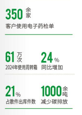 公司扎实推进环境管理、节能减排,推动高质量绿色发展;从绿色物流、绿色仓储、绿色医药等多方面着力,打造低能耗、低污染、高效率的绿色运营模式。