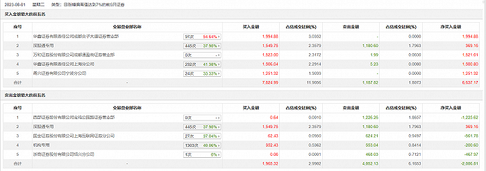 具体来看,机构买入352.43万元,卖出553.04万元,合计净卖出200.6万元。此外,华鑫证券成都交子大道证券营业部、深股通专用分别买入1994.88万元、1549.75万元;西部证券宝鸡公园路证券营业部、深股通专用分别卖出1226.26万元、1180.60万元。