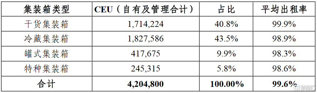 截至2022年二季度末,GSCL自有及管理的箱队规模约420.5万CEU,集装箱平均出租率为99.6%。GSCL服务于全球超过750家租赁客户,集装箱分布于全球172个港口,在全球范围内拥有24个运营中心。具体集装箱箱队组合及出租率情况如下: