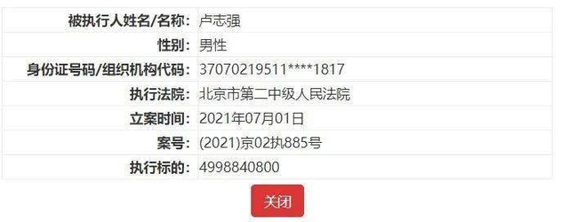 2020年8月,卢志强被北京市第二人民法院列为被执行人,执行标的金额13亿元;2021年7月,卢志强再次被北京第二人民法院列为被执行人,执行标的金额为50亿元。目前,无论是上市公司泛海控股还是整个“泛海系”,都处于资金链吃紧、债务兑付违约的处境之中,由于上诉的供应商太多,未来不排除将继续将卢志强列为被执行人,贴上无数的“老赖”标签。