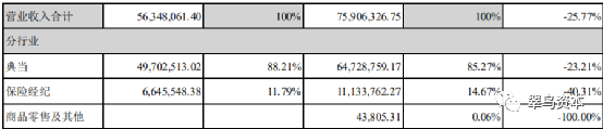 下图显示,公司典当和保险经纪业务分别出现23.21%和40.21%的同比下滑,相比2020年,商品零售业务已经消失。