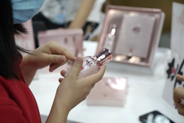 桃花润“臻润”系列护肤产品已于今年夏季正式推出。“臻润”系列采用桃花为包装元素,将“肤若凝脂、面若桃花”的品味宣言与产品表达相结合,并配以专属桃花香型,同时添加多效桃花提取物,由内而外实现品牌“名”与“实”的高度一致,引来现场观展者驻足体验。