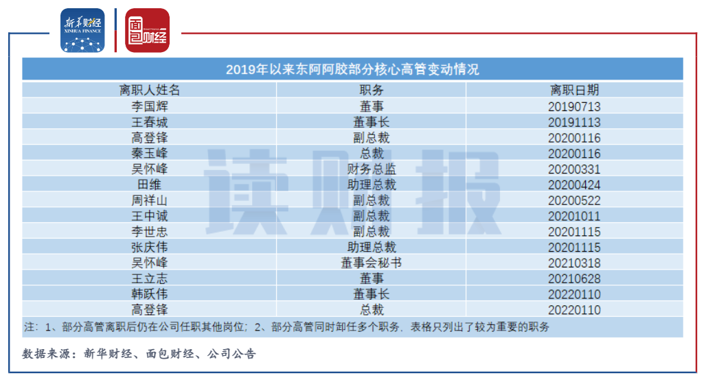 图2:2019年以来东阿阿胶部分核心高管变动情况
