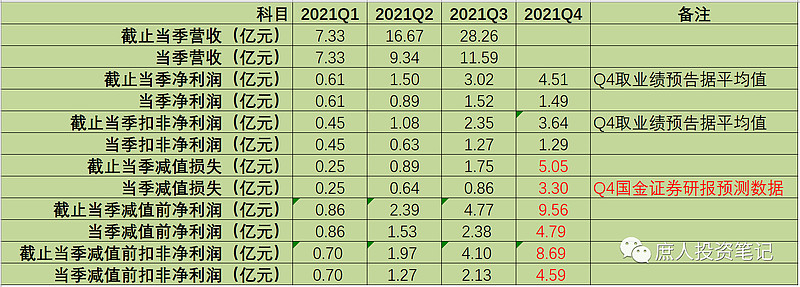 如果按照国金证券研报预计的Q4单季计提了3.3亿的减值损失,全年计提超5亿的话。公司真正的减值前净利润为9.56亿,扣非净利润为8.69亿。见下图: