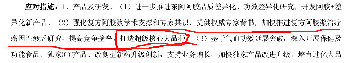 从东阿阿胶保健品有限公司披露的销售数据来看,主要作为阿胶糕的销售单位,2021年销售收入4.7亿,相比2020年的4.14亿,增长缓慢,净利润甚至出现倒退600万,2018年,东阿阿胶保健品有限公司就披露了4.7亿的销售额,这么多年,也毫无长进。阿胶浆同样的情况,阿胶浆没有披露具体的数据细节,但是从终端的价格一路下滑到200多,线上线下的价格混乱的一塌糊涂。在没有阿胶块的势能加持下,阿胶浆和阿胶糕也是个废物。不可能单独独立发展而存在。由此可见,东阿阿胶的核心还是在阿胶块。阿胶块是整个东阿阿胶公司的发展的风眼所在,现在阿胶浆也在挺333的价格,阿胶浆的地位在年报中获得提升。阿胶浆有疗效,使用方便,42年历史,有品牌,独家,而且规模已经上10亿了,是极好的突破口。发展复方阿胶浆才是真正的明智之举。