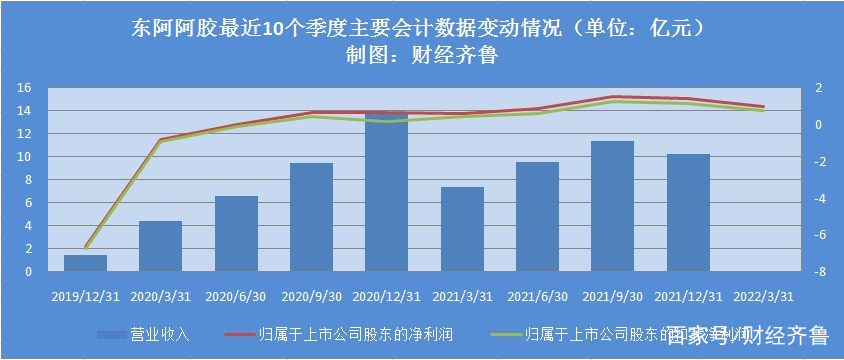 数据来源:东阿阿胶历年年报及季度报,其中2022年一季度数据取该公司业绩预告最低值。