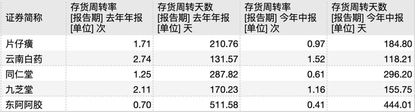 但仔细看来,东阿阿胶的存货周转率却仍然较低,与此前差距较大,与其他传统中药企业相比更是处于行业垫底。以2021年为例,公司存货周转率仅为0.70次,周转天数为511.58天,也就是说阿胶产品从生产到卖出需要超过一年时间。而片仔癀、云南白药、同仁堂等同为传统药企,存货周转最少的也比东阿阿胶快了近一倍。