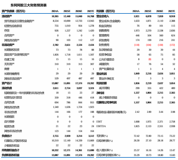 阿胶系列产品稳健放量,盈利能力稳中有升。分业务来看,阿胶块启动溯源动销项目,促进终端动销;复方阿胶浆条带状布局线上渠道,持续拓展目标人群;阿胶速溶粉通过数字化营销精准触达用户;桃花姬阿胶糕线上线下齐发力,阿胶系列整体稳健放量。此外,“皇家围场1619”鹿茸片新品成功上市,持续打造男士滋补产品矩阵。2025年Q1,公司经营性现金流受银行承兑托收到账金额较上年同期减少、经营性费用支付及采购资金支付增加等影响有所承压。但公司整体经营质量比较良性,截至2025Q1,公司存货基本持平,存货周转天数由2024Q1的215.83天降低至187.42天,存货周转率有所提升。2025Q1的ROE提升至4.04%(+0.79pct,同比提升0.79个百分点,下同),销售毛利率提升至73.62%(+1.83pct),销售净利率为24.73%(+0.4pct)。从费用率来看,2025年Q1,公司销售费用率下降至36.26%(-2.6pct),管理费用率略有提升至5.04%(+0.45pct),持续提质增效。