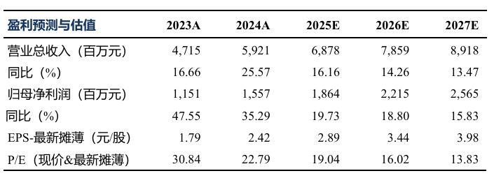 事件:2025年Q1,公司实现总营业收入17.19亿元(+18.24%,同比增长18.24%);归母净利润4.25亿(+20.25%),扣非归母净利润为4.16亿元(26.69%)。业绩符合我们的预期。