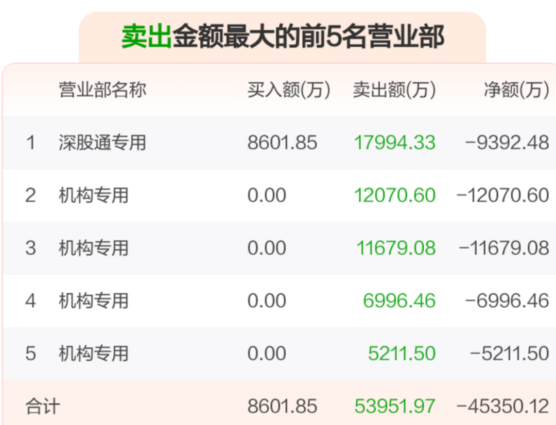 盘后的龙虎榜显示,机构席位在集体卖出,每家至少净卖出5000万元以上,多的两家都净卖出超过1亿元。