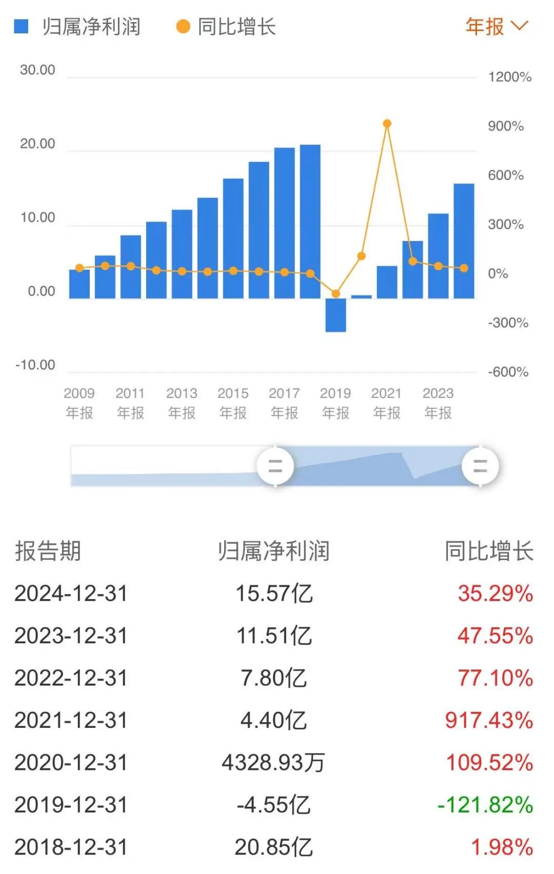 2024年,公司实现营业收入59.21亿元,同比增长25.57%;净利润15.57亿元,同比增长35.29%;扣非净利润14.42亿元,同比增长33.17%。