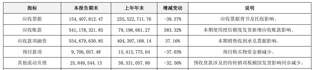 与此同时,东阿阿胶的应收账款规模急剧膨胀。截至一季度末,应收账款余额达到5.41亿元,相较于2024年底的近8000万元大幅增加,同比增幅高达583.32%。东阿阿胶称是本期使用授信额度发货新增应收账款影响。
