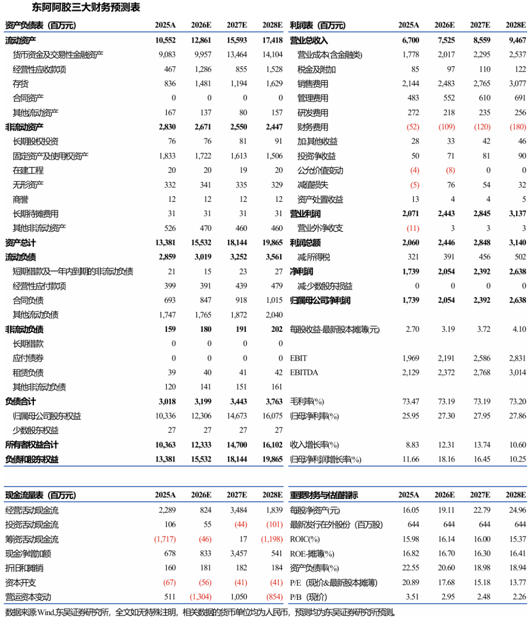 核心产品稳健增长,新赛道布局成效初显:分产品来看,阿胶及系列产品实现营收61.98亿元(+11.80%),毛利率提升至74.84%(+1.23pct,较2024年同期提升1.23个百分点,下同),核心产品持续放量,盈利能力增强。其他药品及保健品实现营收3.86亿元(+63.65%),增速迅猛,成为公司新的增长极。公司坚定“药品+健康消费品”双轮驱动战略,成效显著。一方面,持续巩固“滋补国宝”品牌地位,阿胶系列基本盘稳固,复方阿胶浆大品种战略深化,其治疗癌因性疲乏的研究成果获国际认可。另一方面,公司积极布局男士滋补(皇家围场1619、壮本)、健康零食(遇元气)、中式滋补(燕真卿、参山见)等新赛道,并通过“阿胶小金条”等便捷化产品满足年轻消费需求,成功开辟第二增长曲线。