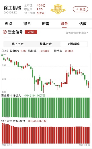 徐工机械2022年04月22日市值404.22亿元,远低于中联重科市值。