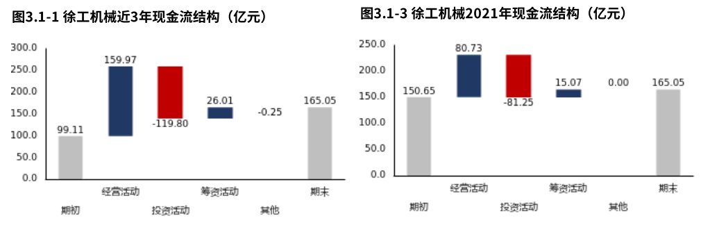 徐工机械经营活动与投资活动资金缺口0.52亿元,较2020年报开始出现资金缺口。
