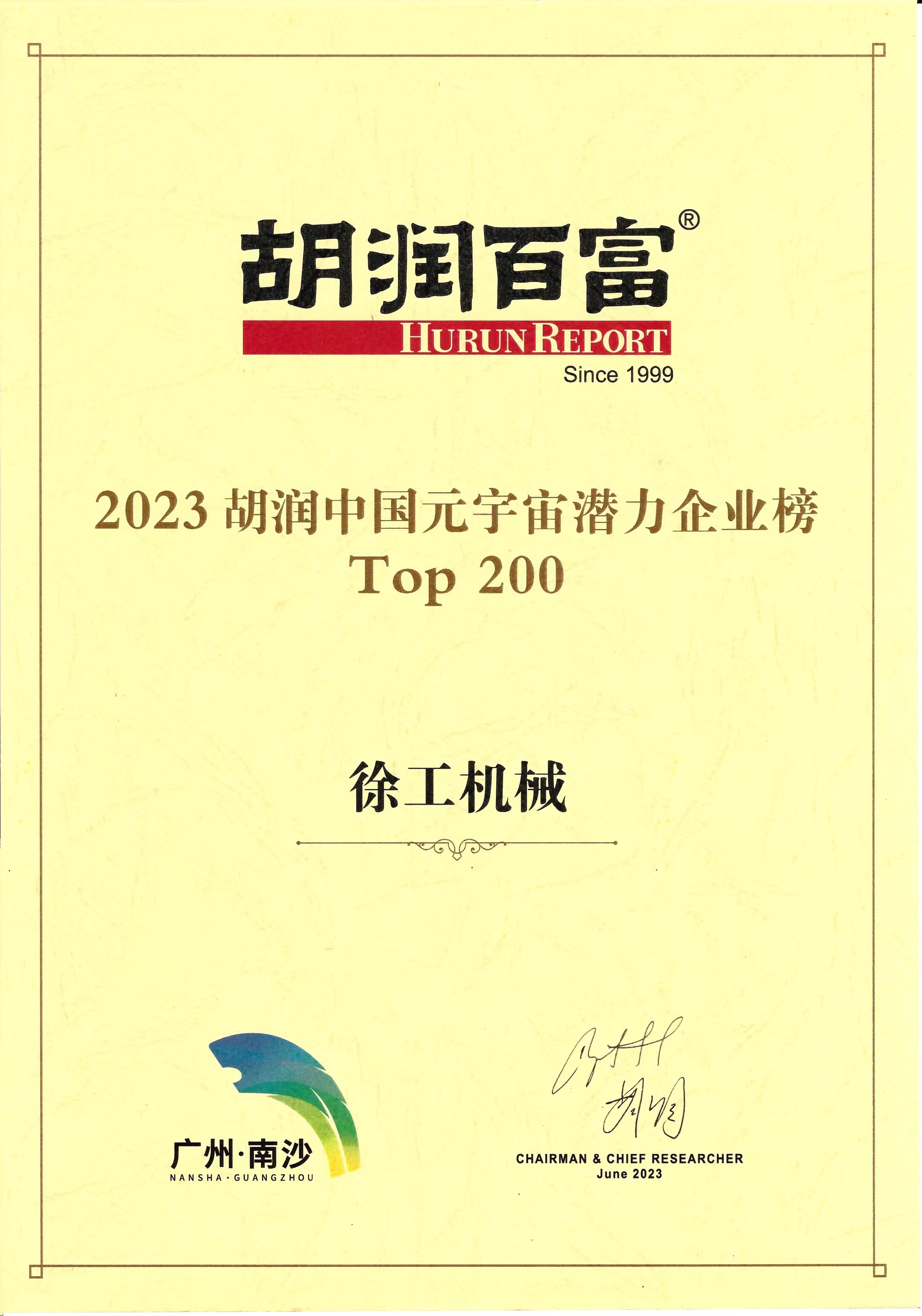 ? 7月20日,《2023胡润中国元宇宙潜力企业榜》正式发布,列出元宇宙领域最具发展潜力的中国企业,徐工机械获评“最具潜力Top200”。