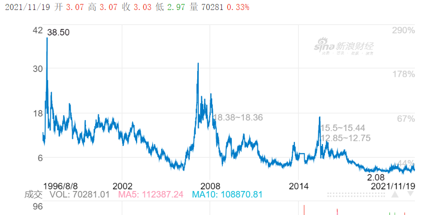2020年因为疫情影响,华天酒店的亏损更是扩大到了5.13亿元,今年疯狂“卖卖卖”的原因可想而知,尽管尚未到2021财年末,剩余4家子公司的交易若能如愿进行,再次实现扭亏对于华天酒店而言也不是没有可能。只是依靠卖资产维持短暂盈利,保壳上市,这条路终归是不能长久。作为上市公司而言,华天酒店的股价已经从刚刚上市巅峰时期的38.5元断崖式下跌到如今(11月19日收盘价)的3.03元。