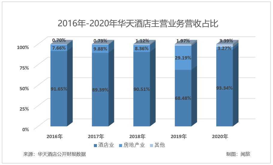 闻旅梳理了华天酒店近五年主营业务营收占比数据,房地产业务在其这些年的收入中从来都不是主角,占比甚至也未超过30%,其他业务而言,占比更是少得可以忽略不计,从这个角度来说,华天酒店的核心业务也一直是在以酒店为核心来布局。去地产化对于华天酒店能带来怎样的提升与改变,除能看到的资产转让带来的短时收益,长期影响很难判然。