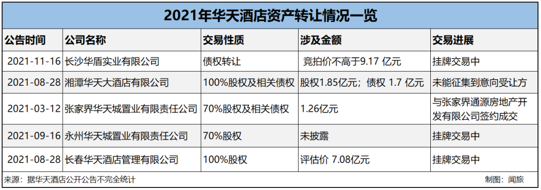 距离华天酒店上一次疯狂卖资产,只间隔了两年时间。2019年,这家老牌酒店上市公司为扭亏为盈,一年内接连出售了4次资产,到了2021年,尚未等到年尾,华天酒店公开挂牌转让子公司股权及债权频次已达到5家,且笔笔交易涉及金额过亿。这不禁让人联想,华天酒店是不是又亏到“缺钱”了?