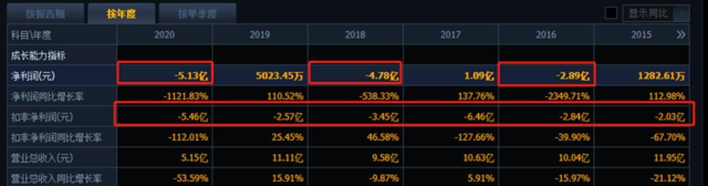 实际上,此举更多像是在“保壳”。据悉,2014年,公司扣非净利润开始亏损,截至2020年,扣非净利润连续7年亏损,合计亏损额24亿元。为了“保壳”,期间公司屡屡卖资产,让净利润维持“小赚一年后大亏一年”的状态。