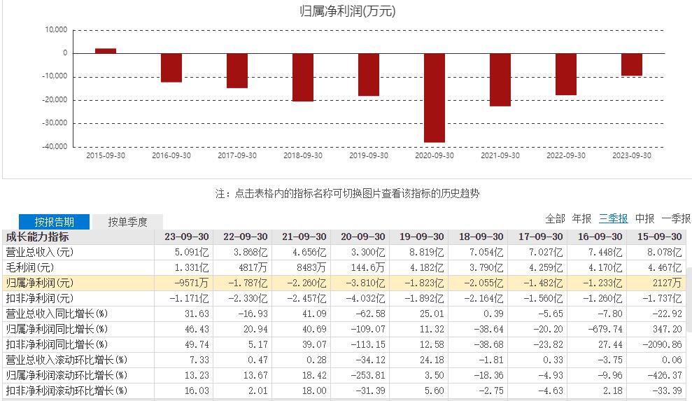 据其今年的三季报显示,其归母净利润-2100.1万元,扣非净利润-2378.39万元。