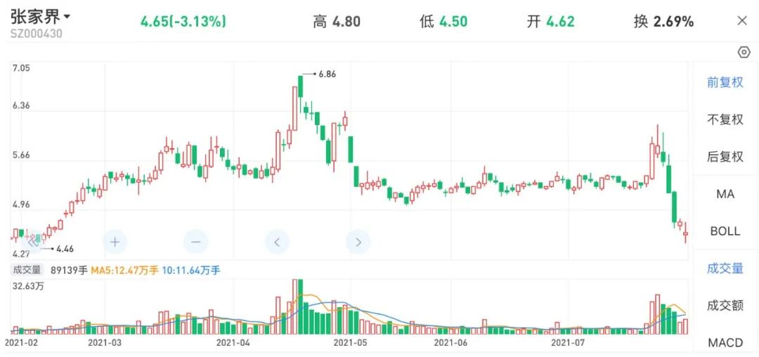 过去一周,从6.17元的高点,猛跌到4.65元,跌幅达1/4。张家界旅游集团业务都在当地,经营业务有环保客运、宝峰湖、杨家界索道、旅行社、张家界国际酒店等。